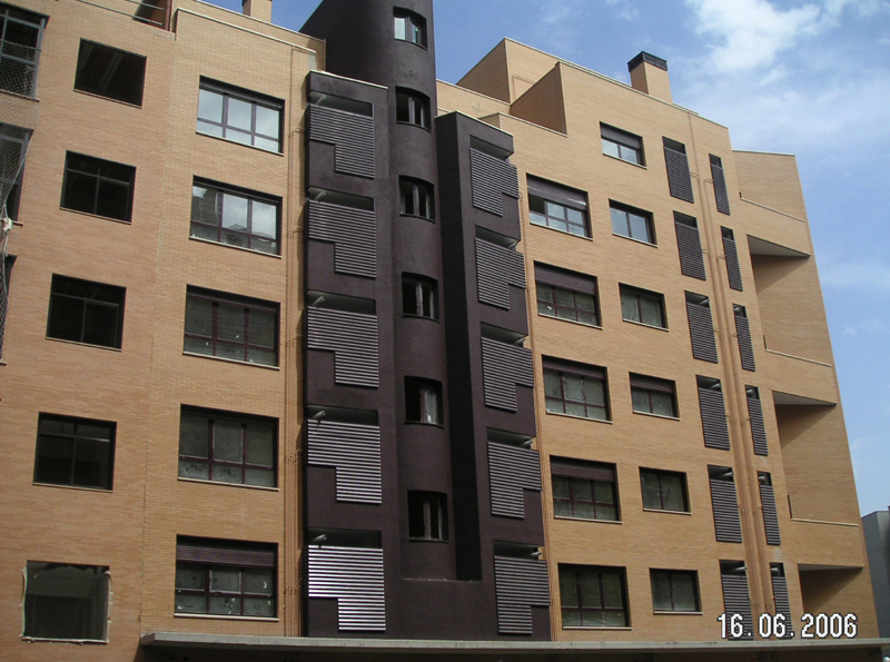 El conjunto se desarrolla en aproximadamente 9.100 m² de superficie construida con zonas comunes, distribuidas en 8 plantas de altura siendo estas: bajo comerciales, 6 plantas de viviendas + ático en bajo cubierta.