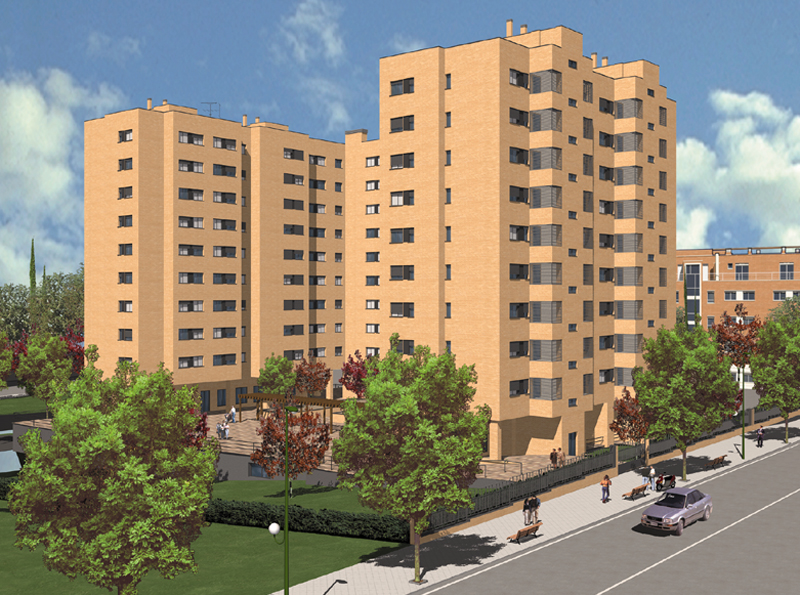 Die Wohnanlage Mirador del Calderón besteht aus zwei Gebäuden mit insgesamt 275 2-, 3- und 4-Zimmer-Wohnungen im Zentrum von Madrid, auf beiden Seiten des Fußballstadions Vicente Calderón.